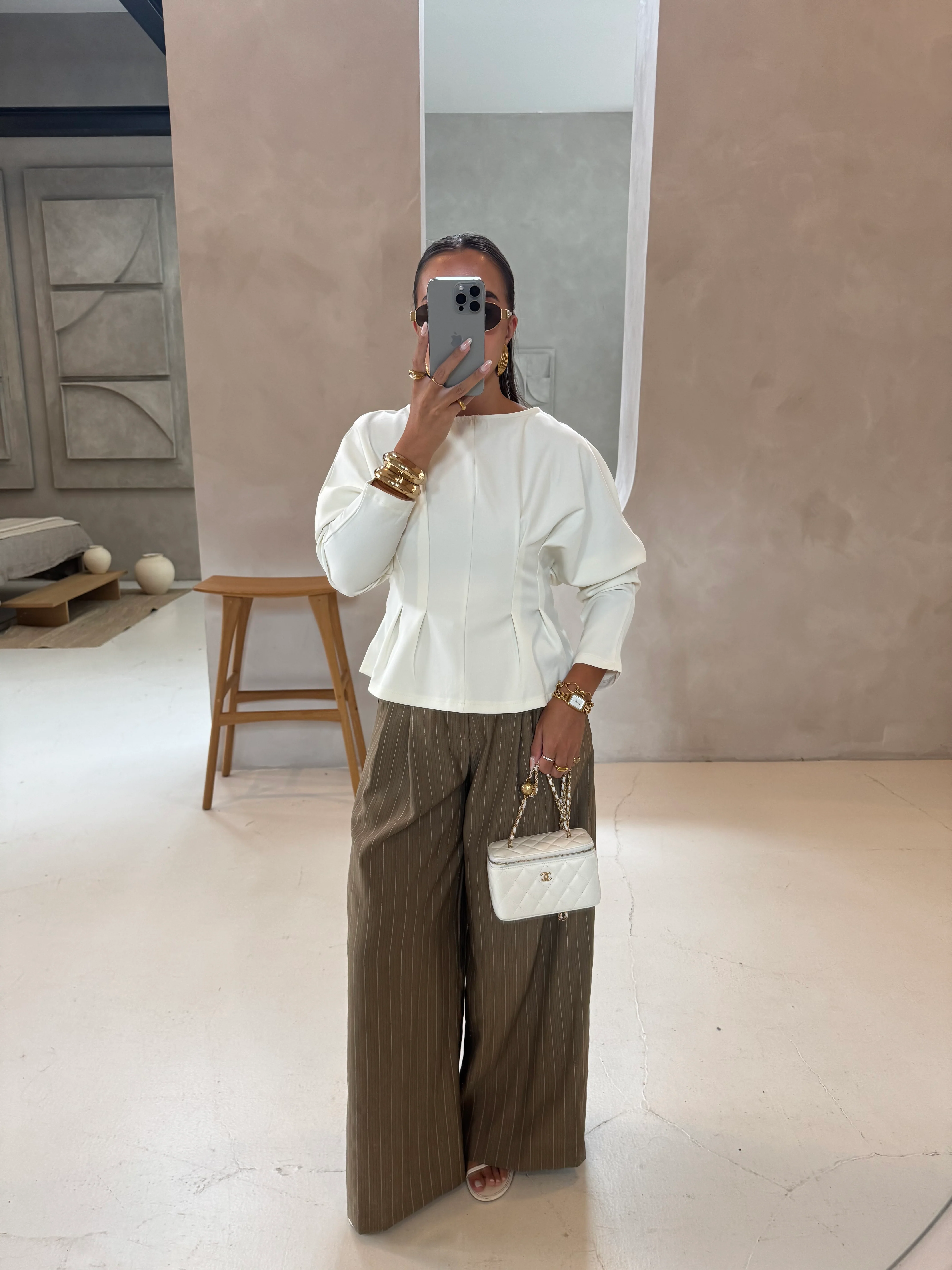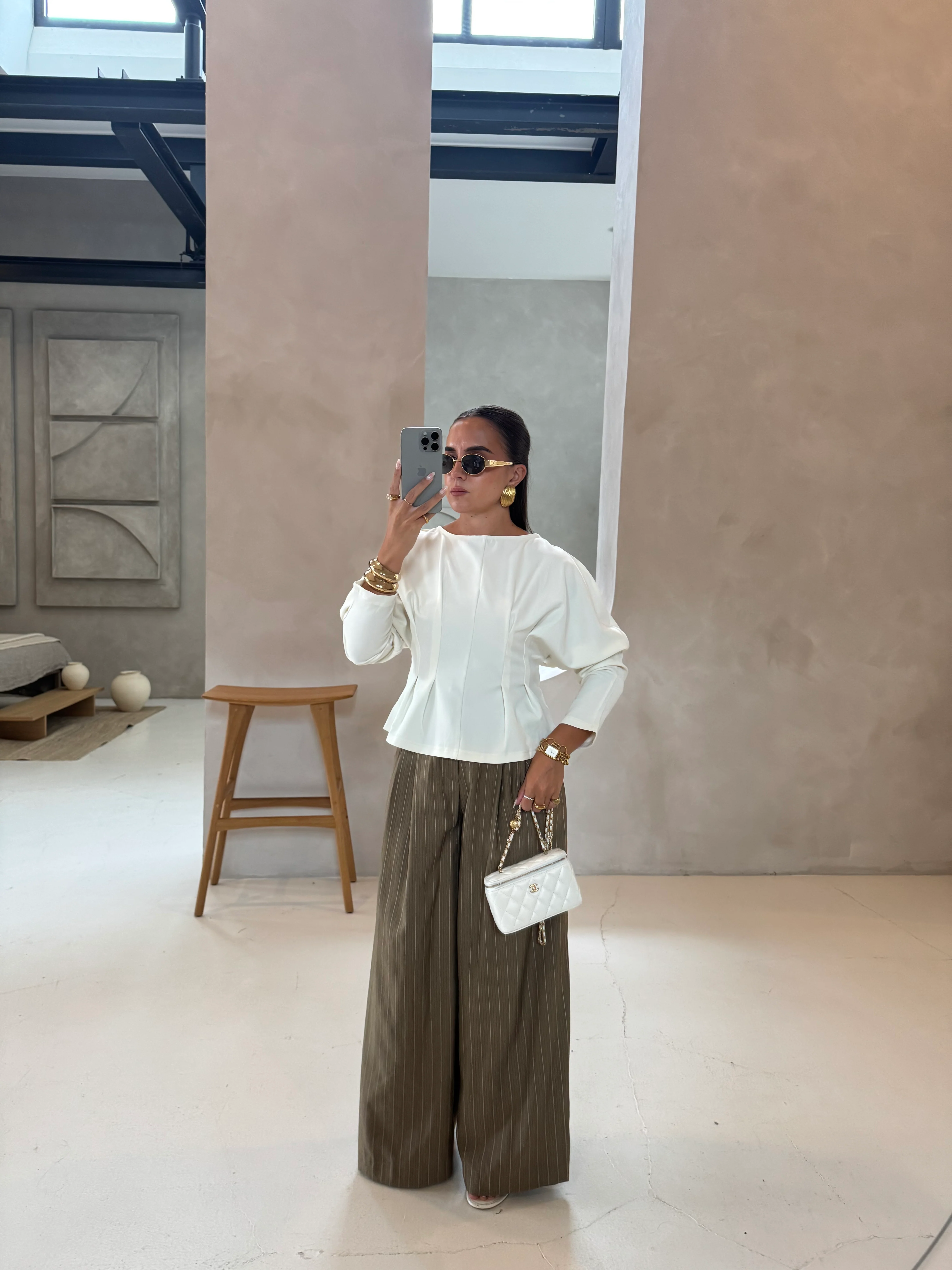 Pantalon rayures large kaki (25CY907)—